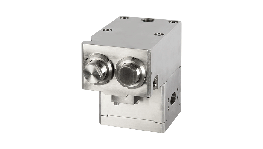 It is a special IMI STI application to connect our accessories. Fittings or nipples are not necessary as the connection is achieved using machined connection faces with sealing 'o' ring. This system saves time for assembly, reduces costs, inventory and the shortened dimensions save space.