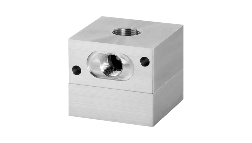 It is a special IMI STI application to connect our accessories. Fittings or nipples are not necessary as the connection is achieved using machined connection faces with sealing 'o' ring. This system saves time for assembly, reduces costs, inventory and the shortened dimensions save space.